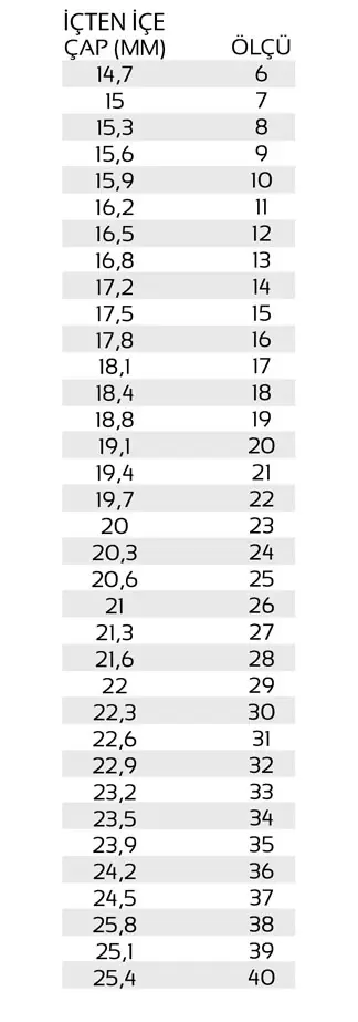 YÜZÜK ÖLÇÜ TABLOSU
